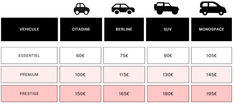 Tarifs de nos services de detailing